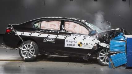 Honda Accord finally achieves maximum five-star safety rating along with Nissan X-Trail, Honda City, Toyota Prius C and upcoming Peugeot 308.Honda have overcome the shock of last year's four-star safety rating for the Accord sedan, with recent structural tweaks helping it to earn the full five stars from the Australasian New Car Assessment Program (ANCAP).When the 9th generation Accord appeared in May 2013, ANCAP deemed its frontal offset test performance unsatisfactory for a five-star rating, scoring 11.21 out of a possible 16 .Honda has since implemented changes to the frontal structure of the Accord in August 2014 which has raised its score in the frontal offset test to 14.79 in this round testing, pushing it over the line for a maximum five-star rating."This is a great example of a non-regulatory program at work," ANCAP Chairman Lauchlan McIntosh said."Honda has reviewed the ANCAP test results and actively implemented changes to offer consumers a safer car."The same praise was not lavished on the X-Trail mid-size SUV however, with ANCAP critical of Nissan's omission of the Autonomous Emergency Braking (AEB) from Australian-spec models. Despite this the SUV still gained a five star safety rating.ANCAP was similarly critical of the Qashqai small SUV's AEB omission when it was tested earlier this year.Like the Qashqai, AEB is available on European-spec X-Trails, along with several other models on the Australian market. It can prevent collisions by detecting stationary objects and applying braking force before the driver reacts.For the Honda City and Toyota Prius C, all model variants have been given the maximum five stars by ANCAP. Only diesel versions of the new Peugeot 308 have been awarded five stars, leaving petrol versions unrated.
