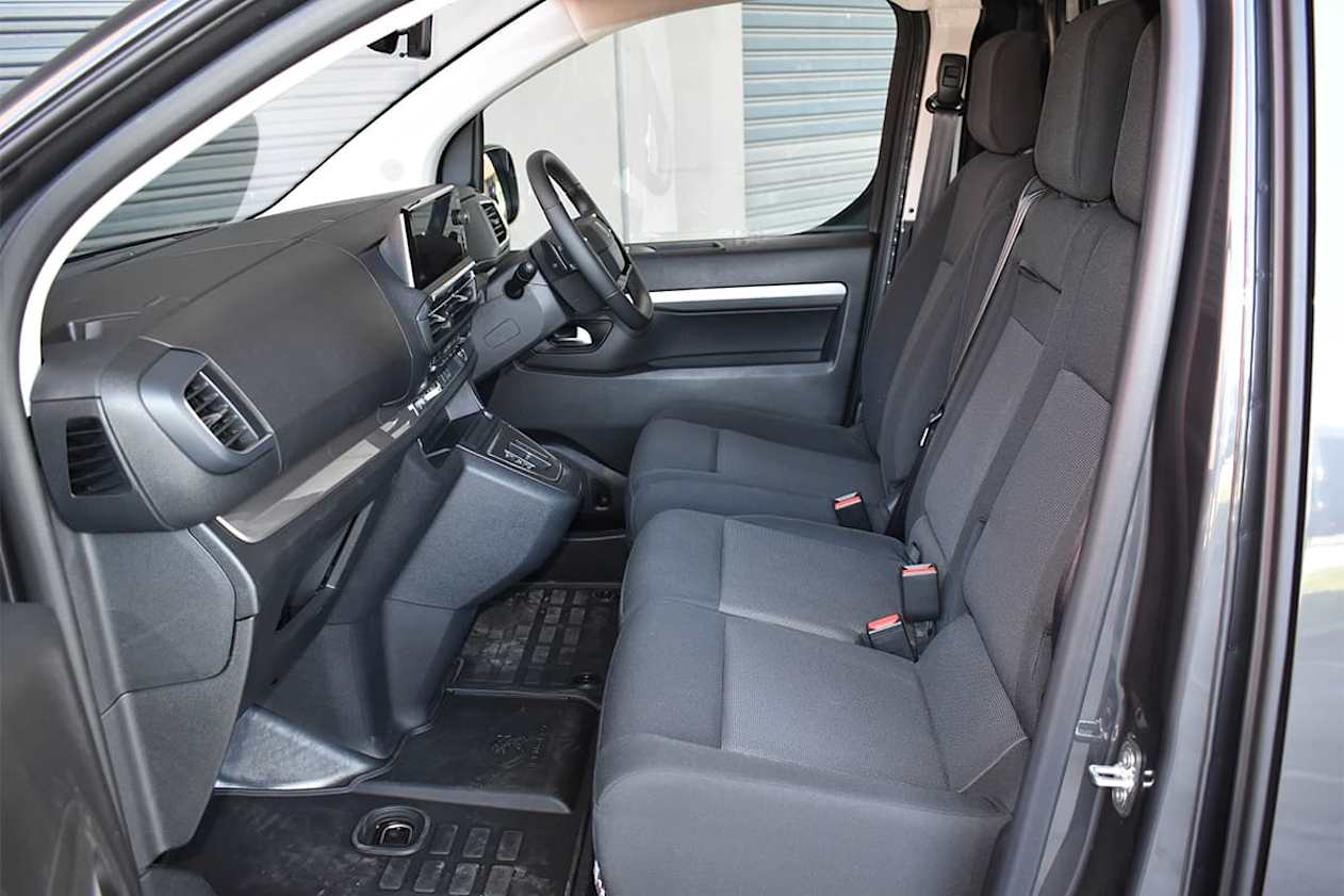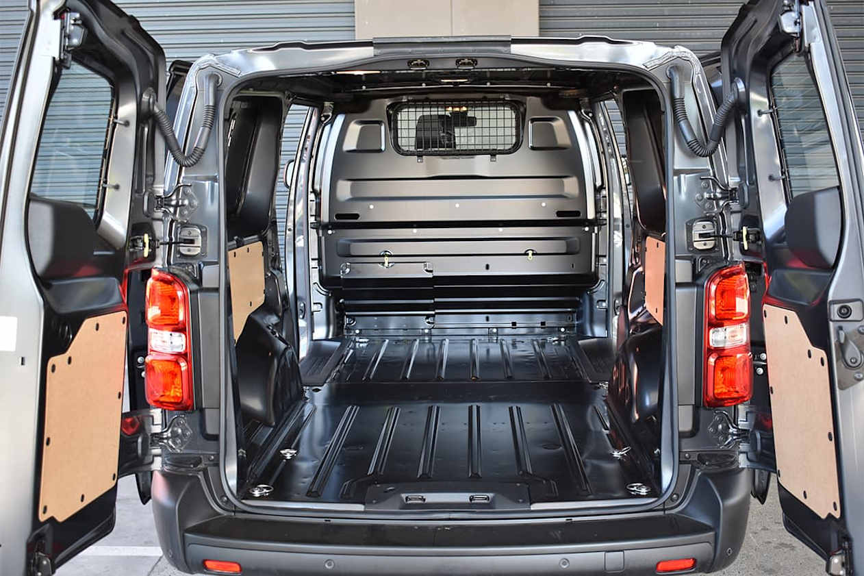 E-Expert standard equipment includes a solid bulkhead between cabin and cargo bay with load-through flap, front/rear parking sensors, daytime running lights, 180-degrees reversing camera, demister/wiper on each rear barn-door, two USB ports, two 12-volt sockets, electric parking brake, dual-zone climate control, heated steering wheel with multi-function controls and heated driver’s seat.