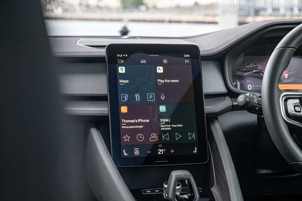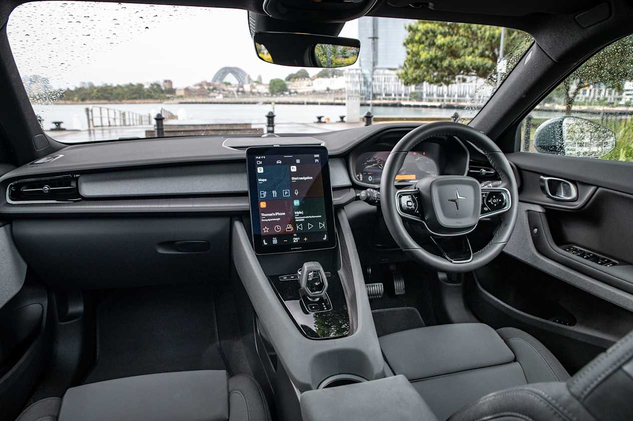 There are three different ways to charge your Polestar two – two at home and one in public. The first involves a regular 240V wall socket, using a standard charging cable provided by Polestar. This will take roughly 34 hours at home for the 69kWh battery or 41 hours for the long-range 82kWh battery. Charging costs range between 21 to 36 cents per kWh on average but can vary depending on demand and which state you live in. Alternatively, owners can purchase an AC wall unit which on average costs between $800 to $2000, with additional charges for installation. An 11kW unit will fully charge a Polestar 2 with a 69kWh battery in seven hours, while the 82kWh unit will take eight hours. If the unit is hooked up to solar power, the cost can be free. Polestar owners can also access public DC fast-charging stations with the maximum output of 200kW. It will take 40 minutes to charge the 69kWh battery at this rate and 32 minutes on the 82kWh unit. Once again, charges depending on demand and where you’re charging, but as a general rule you should never pay more than $40 per charge.