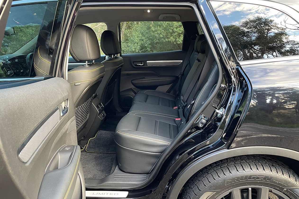 The Koleos is a five-seat SUV. The rear seats recline and fold manually 60/40. They’re also surprisingly comfortable. The seats are set high up so kids can easily see out windows.