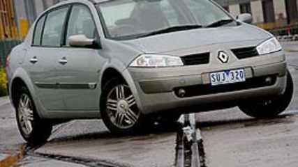 Either way the result was the same and what had promised to be an early night turned into a much later one.Once that little misunderstanding was behind us I found myself warming to the Megane sedan when I didn't think I would.Our test car was the top of the line Privilege model with all the fruit including leather upholstery, priced from $35,990 plus on roads. it looks remarkably like VW's Passat in profile as one colleague has already pointed out. That's not a bad thing.although the Megane sedan dwells in the small car bracket it is much larger than this pigeon hole suggests.We'd describe it as almost medium-sized in proportions, with generous rear legroom.the wheel base is 61mm longer than the hatch and it has larger rear doors for easier access. Good sized boot.for those that find the hatch and its radical round rump a bit over the top the sedan with its more conservative styling will appeal. It is still quite elegant in design and the sporty flared guards convey a sense of power.2.0-litre 16-valve engine with variable valve timing (VVT) delivers 98kW of power at 5500rpm and 191Nm of torque at 3750rpm. It's not going to knock your socks off but it is not disappointing either.the engine in our test car was teamed with a "Proactive" automatic transmission that includes flick-shift selection. It's only a four-speed auto but it was more than adequate for the job. We didn't use the flick option much because with four cogs it didn't have much to offer.it's got one of those card thingies instead of an ignition key. You insert the card into a slot in the dash, put your foot on the brake pedal and then push the start/stop button to start the car. It's different but can't see the point really.Mac strut front end and torsion beam rear set up have been adapted from the hatch, with particular attention to the rear damper and suspension travel settings. The result is an excellent ride and handling package.a lot of thought has obviously gone into the Megane's design and it includes many practical features, like the fuel filler cap that has been dispensed with in favour of a spring loaded flap. You just open the filler door and push the nozzle straight in,. No more dirty hands.we also liked the integrated storage bins in the front doors. The armrest flaps lift to reveal them.the brakes are are grabby. The sedan is equipped with ABS, Emergency Brake Assist and electronic brake force distribution (EBD).fuel economy was excellent from the 60-litre tank, although it should be noted that it drinks premium. We achieved a figure of 8.2L/100km.five star safety rating, with two front airbags, side chest airbags in the front and curtain airbags front and rear.other nice touches include rear window sunblinds as well as sunblinds in the rear doors, plus cruise control and speed limiter, automatic wipers and headlights and auto dimming rear view mirror.
