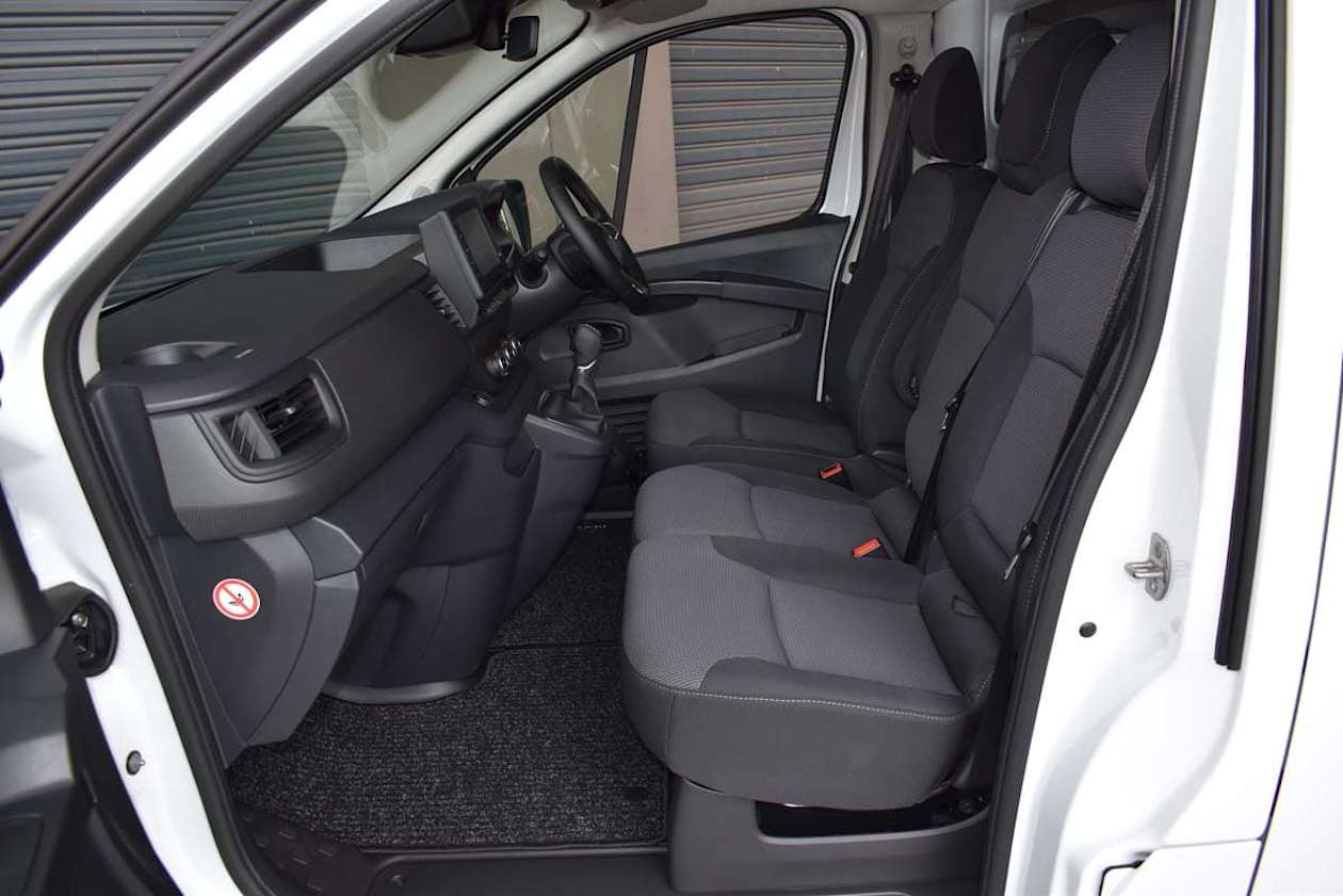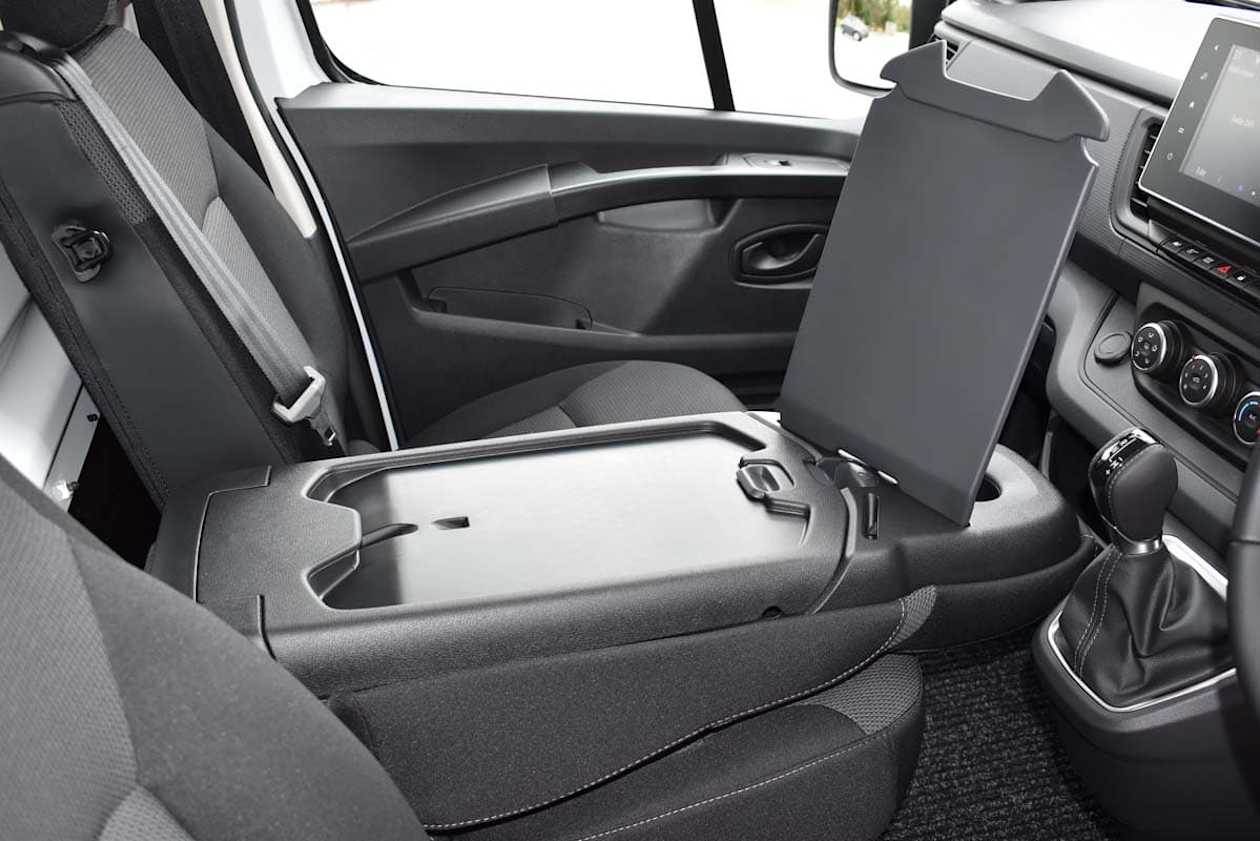 The Trafic range shares a neat and practical cabin design, with a tasteful blend of contrasting seat fabrics and satin chrome highlights throughout. It also has generous head-room and displays optimum use of storage space.