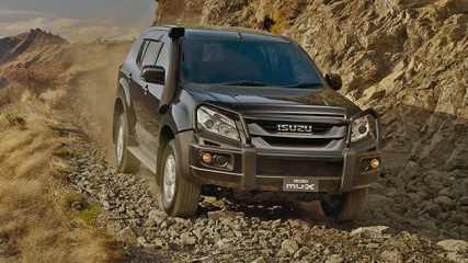 For those who really want to go bush, the vehicle options are dwindling. Yet the family-friendly, seven-seat Isuzu MU-X is one of the big surprises - eminently capable in the dirt, very comfortable in the city, fuel efficient, durable and, it could be said, good looking. But it's not for pretenders.There are three models and two transmissions and, though based on the Holden Colorado 7, there are important differences. The Isuzu has fewer kilowatts and one cog less in the automatic transmission than the Colorado, but has a superior five-year warranty, is more economical, has a full-size spare wheel and in the $53,500 LS-T model, a rear DVD player.The excellent iGo satnav, eight-speaker audio (but no Bluetooth audio streaming), reverse camera, aircon in all three rows, leather upholstery and electric driver's seat are all standard. There's no capped-price service and servicing is six-monthly. The LS-T tested is expensive and $49,300 LS-U is better value.The Thai-built wagon is a good looker. The "happy face" nose and the neat side profile with blackened rear-side and rear glass cleverly shrink the MU-X's proportions. The wagon is high off the ground but side steps give good access to the third seat row via a split, fold and tumble second row.The cargo floor is high — courtesy of the bulky live-axle rear and coil suspension — and interrupted by a box containing the luggage blind. Space is 235 litres (all seats up) to 1830 litres. The third row of seats folds flat but the tumble-fold second row reduces the boot floor length.Top marks for the rooftop vents for all rear passengers, two gloveboxes and dash top-box, grab handles, cupholders, storage space and lap-sash seat belts for all seven occupants.The MU-X ("Mysterious Utility" is how SUV translates in Thai) dispenses with the Isuzu D-Max dual-cab ute's live rear axle and leaf springs, bolting in a long-travel coil spring arrangement. The 3.0-litre turbo diesel (130kW/380Nm) and the Aisin five-cog auto are not shared with Holden's products. There are disc brakes all-round and two big skid plates, it's relatively light at 2060kg yet has a 3000kg tow rating.Despite its truck origins, it gets a five-star crash rating, six airbags, rear camera, rear park sensors, hill holder, electronic stability and traction control, full-size alloy spare and brake assist. Hill descent is automatic and built into the gearbox's sensors, though isn't as effective as a switchable system.I expected a truck and happily realised this is something between a 4WD ute and a Toyota Kluger. It is a confident cruiser and sits solidly on the road and is barely affected by sidewinds or rutted bitumen. The engine is torquey and forgiving — more docile and feels more powerful than the Colorado — with surprising economy. An electric switch controls the two-speed transfer case.Gravel and sand failed to slow this wagon and the high ground clearance and long-travel rear suspension made short work of washouts. The turning circle is large — typical of the genre — which can frustrate city owners. Good ride comfort over rough terrain and quiet highway cruising makes it one of the better all-rounders.