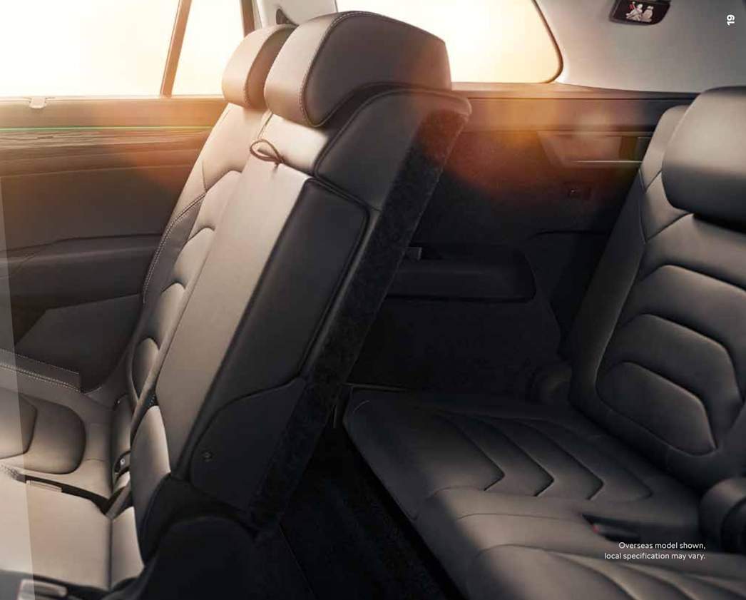 The following Skoda Kodiaq comes with seven seats. Black Suede (Suedia) is standard across the range, with the choice of Ivory or Black perforated leather available with the optional Luxury Pack. The Sportline variant is available only with a combination of Suedia and leather seat trim in black.