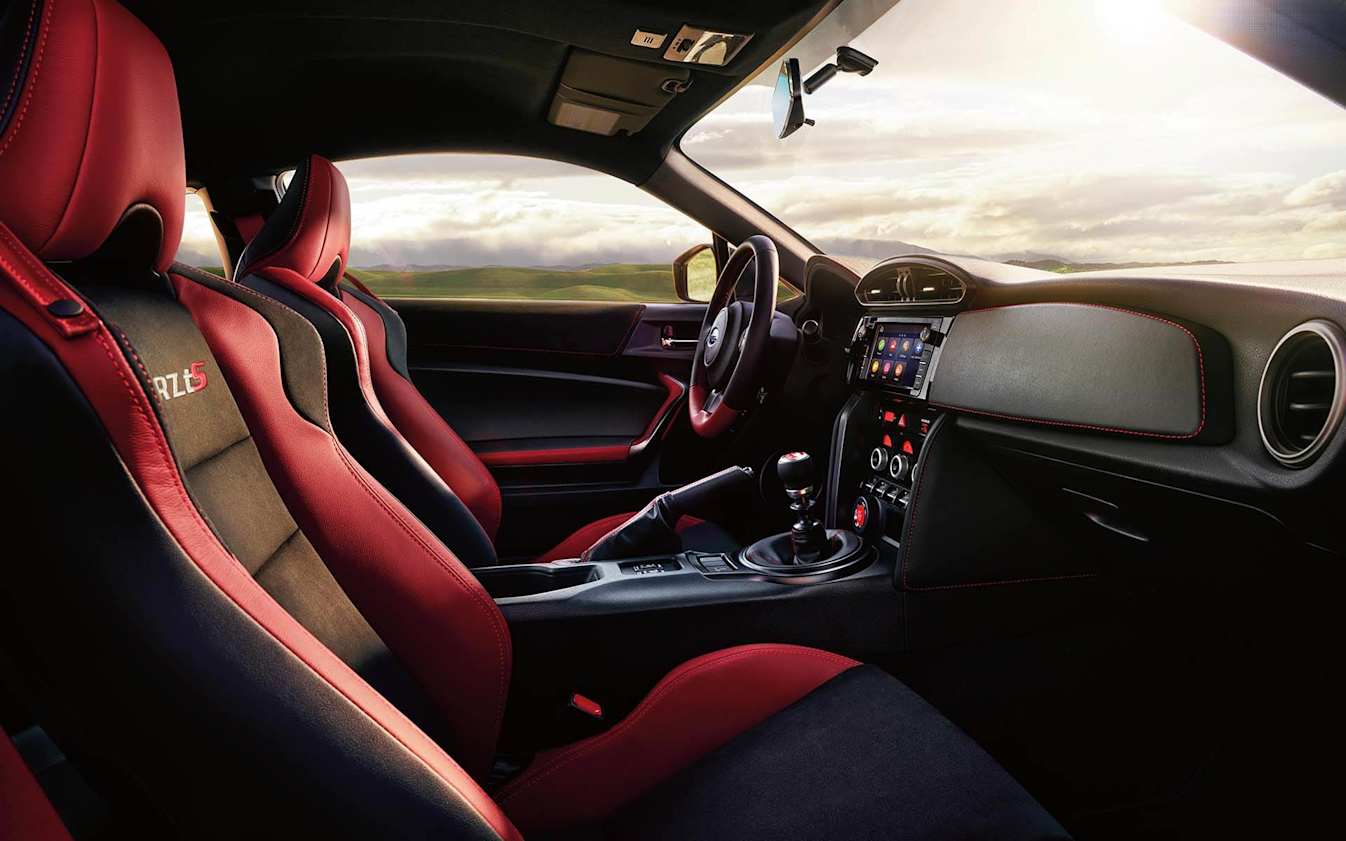 The following Subaru BRZ is available with four seats. The BRZ comes with Black cloth seat trim with red stitching as standard. The BRZ Premium variant comes with Alcantara trim with leather accents as standard. The BRZ tS variant is available with Alcantara trim with red leather accents as standard.