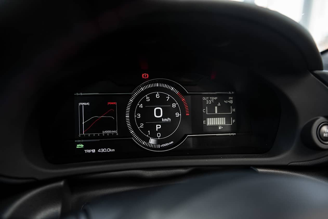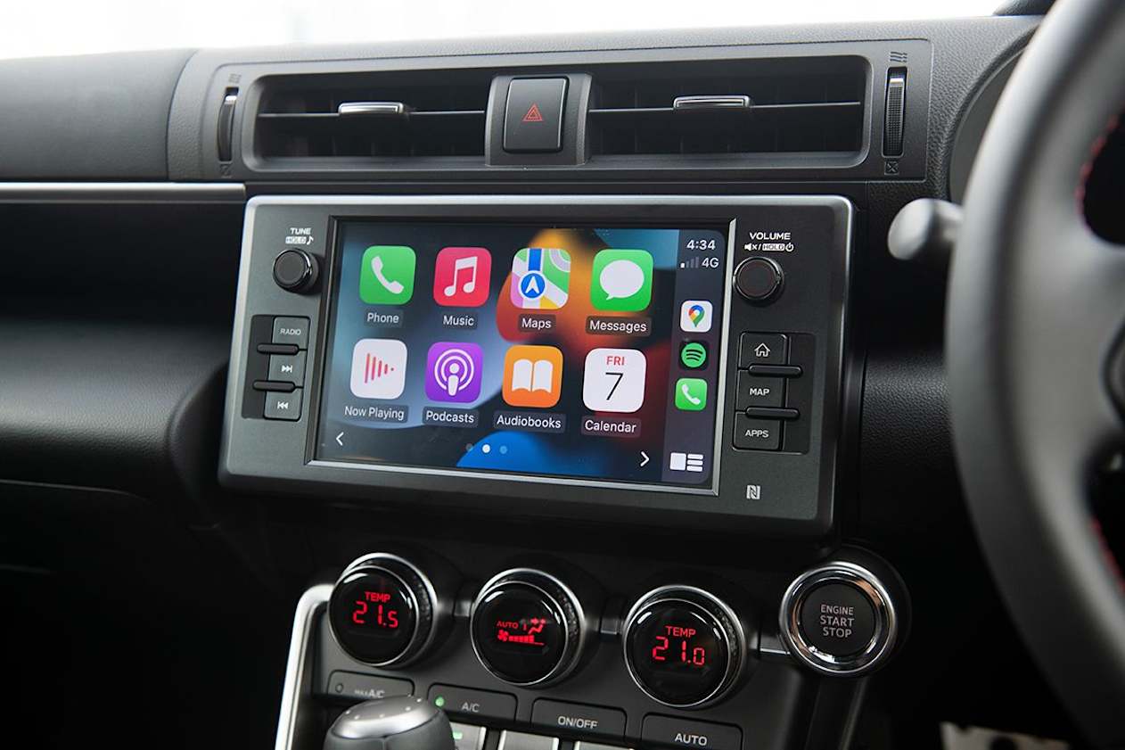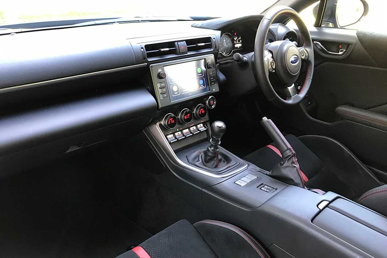 All BRZs feature dual-zone climate control, cruise control, and an 8.0-inch multimedia touchscreen, six-speaker audio (including Android Auto and Apple CarPlay), keyless entry and start, 7.0-inch digital instrument cluster, a reversing camera, a leather steering wheel and gear shift (with red contrast stitching), 18-inch alloy wheels, and the auto LED headlights are self-levelling.