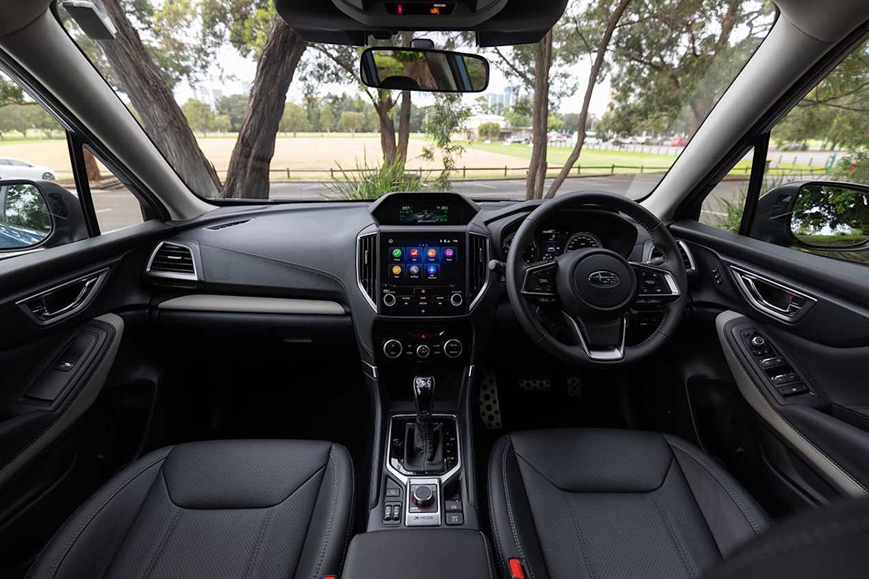 The entry grade in the Forester range is called the 2.5i and it lists for $35,990 and comes with dual-zone climate control, an eight-inch media touchscreen with Apple CarPlay and Android Auto, a 6.3-inch display for vehicle info, and a smaller 4.2-inch screen in the instrument cluster, cloth seats, a proximity key with push-button start, plus tinted rear windows, LED headlights and daytime running lights and 17-inch alloy wheels.