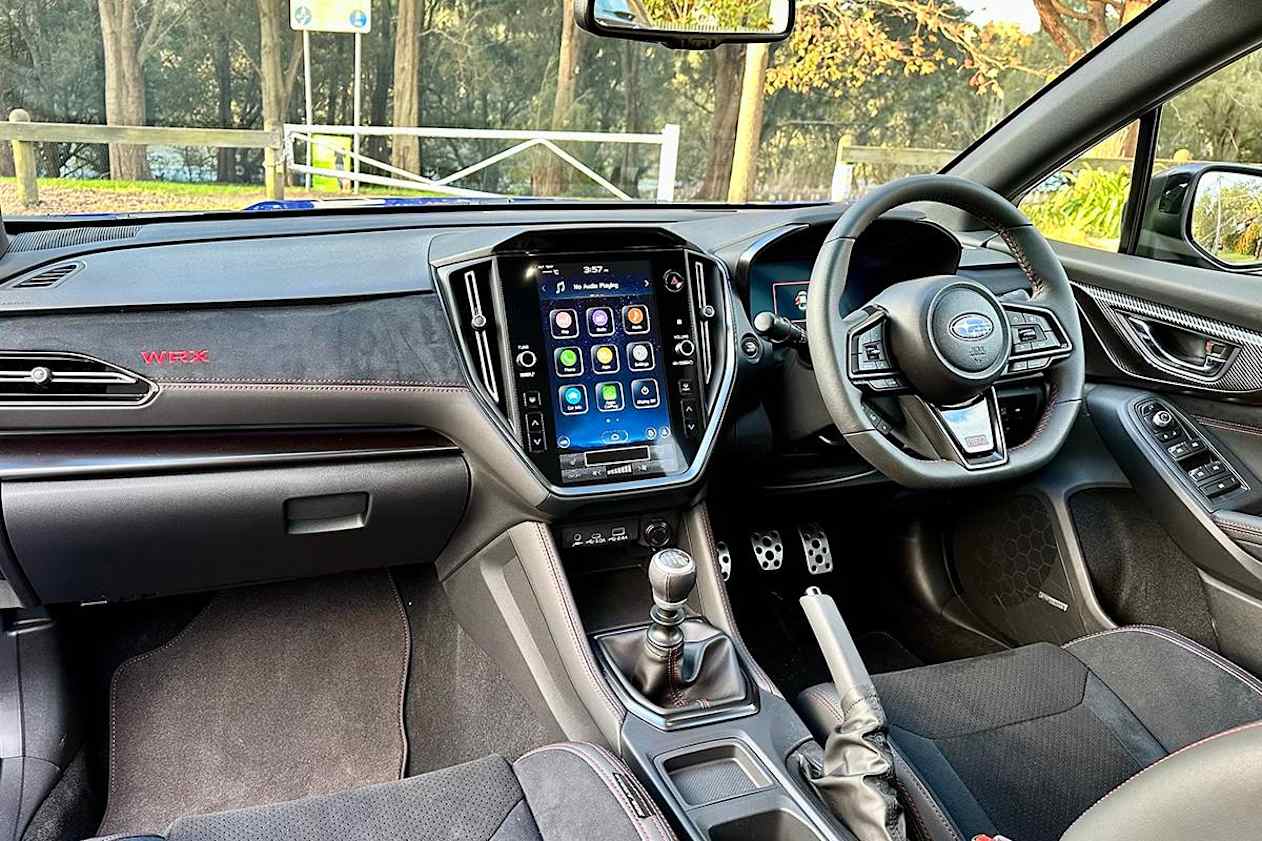Standard features on the entry-grade WRX include an 11.6-inch (portrait) media screen, wireless Apple CarPlay and Android Auto, dual-zone climate control, 18-inch alloy wheels, sports bucket seats and a leather steering wheel (with WRX logo).
