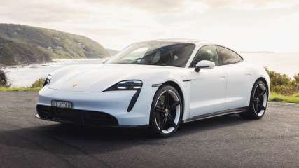 The Turbo sits above the entry-level 4S and below the flagship Turbo S in the Porsche Taycan line-up, with it priced from $268,500 plus on-road costs.Standard equipment includes rear torque vectoring, sports-tuned three-chamber air suspension with adaptive dampers and active anti-roll bars, ceramic-coated cast-iron brakes (410mm front and 365mm rear discs with six- and four-piston calipers respectively), dusk-sensing Matrix LED headlights, rain-sensing windscreen wipers, 20-inch 'Turbo Aero' alloy wheels, rear privacy glass, a power-operated tailgate and body-colour exterior trim.Inside, keyless entry and start, satellite navigation with live traffic, Apple CarPlay support, digital radio, a 710W Bose sound system with 14 speakers, a heated steering wheel, 14-way power-adjustable front seats with heating and cooling, heated rear seats and four-zone climate control feature.ANCAP hasn’t awarded the Taycan line-up a safety rating yet. Advanced driver-assist systems in all grades extend to autonomous emergency braking with pedestrian detection, lane-keep assist, adaptive cruise control, blind-spot monitoring, surround-view cameras, front and rear parking sensors, and tyre pressure monitoring.The Turbo is powered by two permanent magnet synchronous electric motors, which are split between the front and rear axles to enable all-wheel drive, with the former fitted with a single-speed automatic transmission, while the latter has a two-speed unit. Together, they produce up to 500kW of power and 850Nm of torque. Electricity use on the combined-cycle test (ADR 81/02) is 28.0kWh/100km, while driving range is 420km.