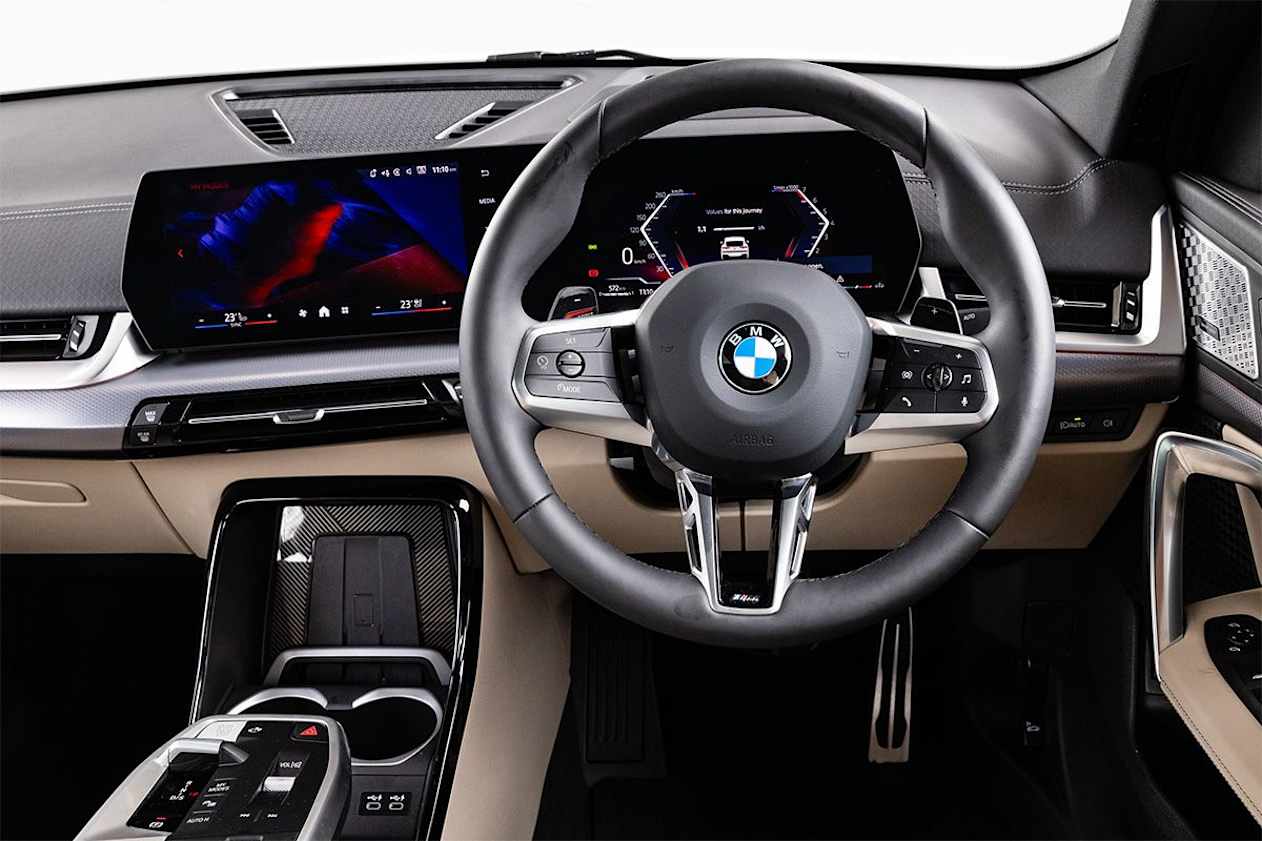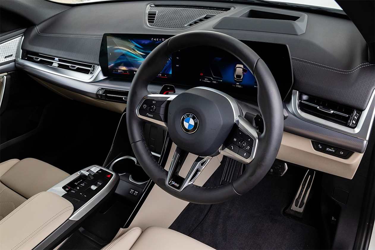 Inside is a different story with elegant simplicity the X2's remit. It's much like an X1 in layout with crisply integrated curved screens running the latest iDrive 'OS9'.
