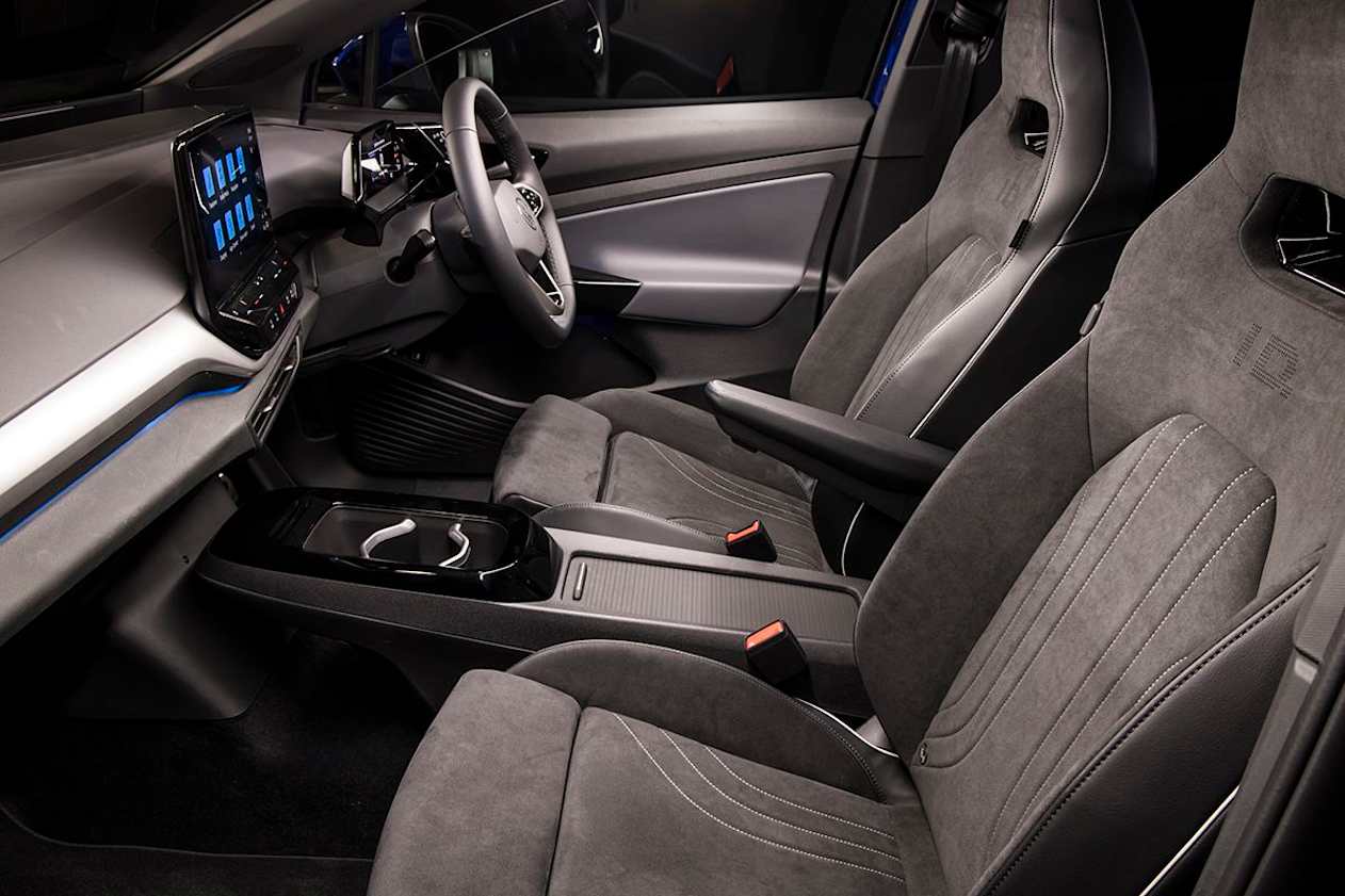 The ID. 4 is strictly a five-seat mid-size SUV offering, with seats trimmed in a blend of leather and synthetic 'microfleece'.
