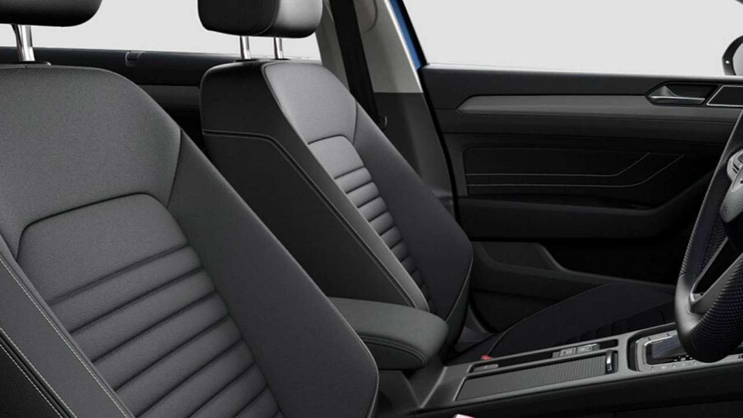 The following Volkswagen Passat is available with five seats. The Passat 132TSI comes with Black Cloth upholstery as standard. The 132TSI Comfortline variant is available with Black Vienna leather appointed seat upholstery. Carbon Nappa leather upholstery with R-Line logo is available as an optional extra.